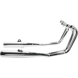 MAC Quality Chrome 4 into 2 Complete Exhaust System with Megaphone Mufflers. Headpipes with mufflers, removeable baffles, center stand retention, access to all service points. High quality made in the USA.