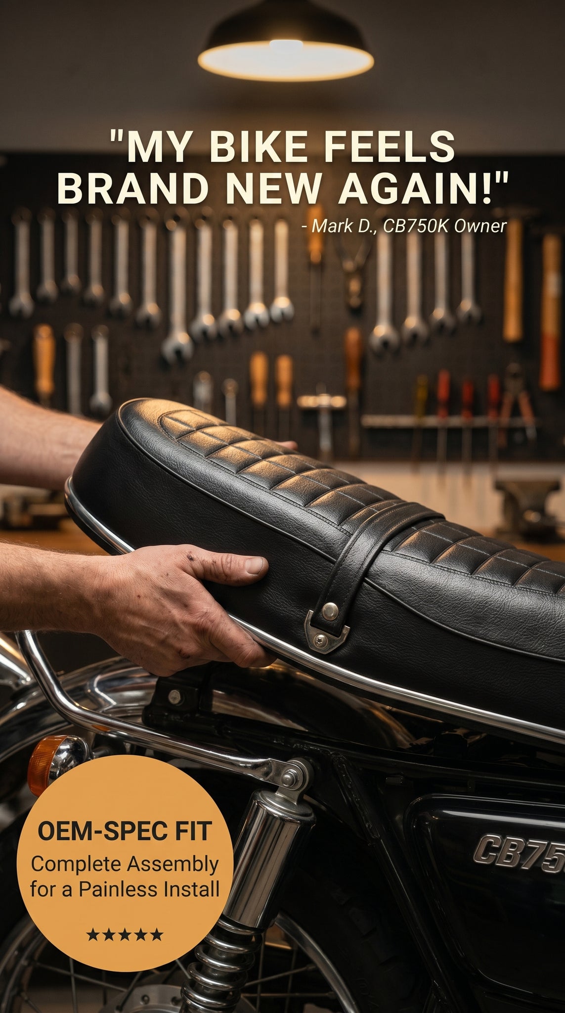 Stock Style CB750K 1972-76 Seat Assembly, Replaces OEM# 77200-341-701 / 77200-341-000 / 77200-341-700.